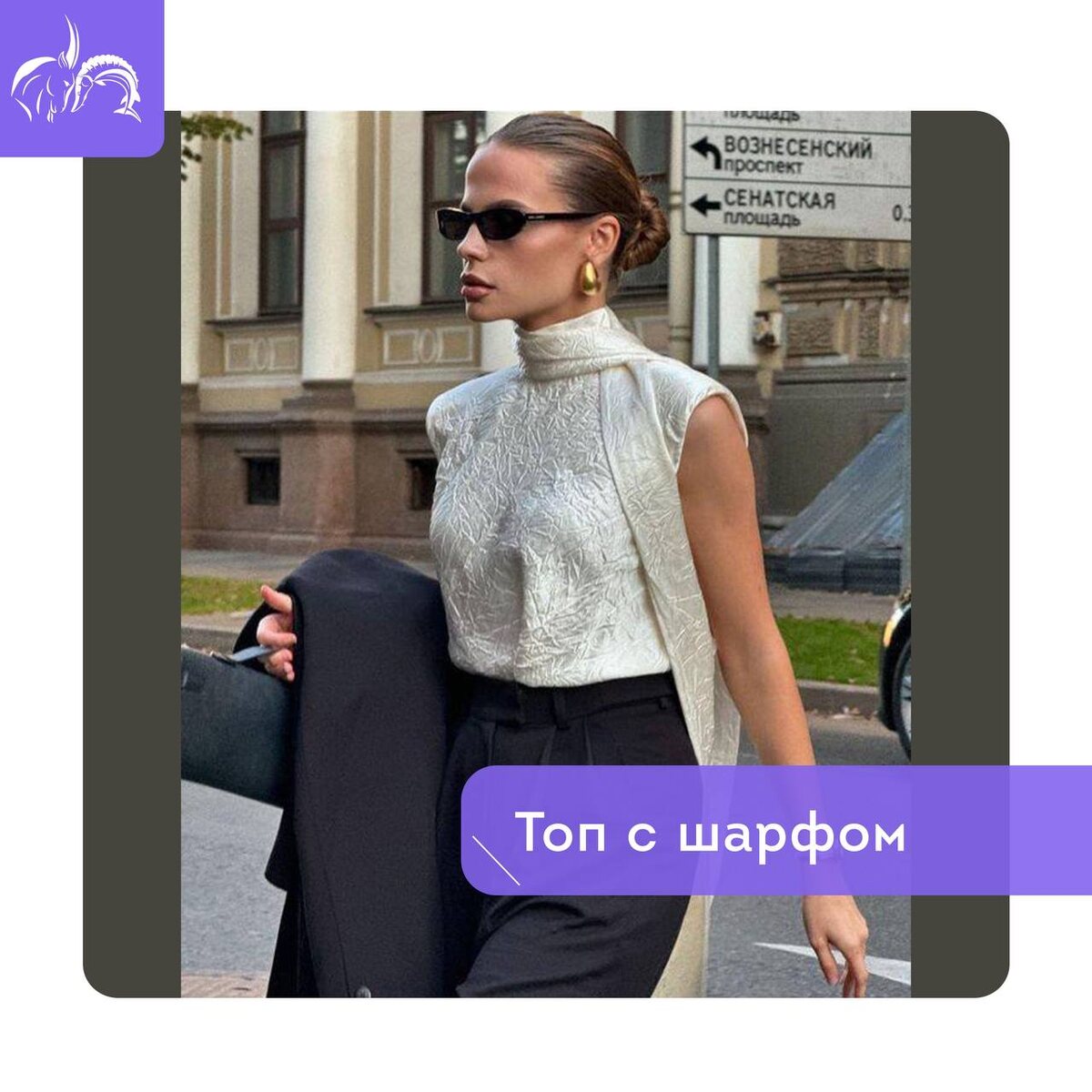 Наша Козочка нашла сногсшибательную новинку этой осени. Даже невозмутимая Стерлядь чуть дар речи не потеряла. "Зачем тебе этакая штучка?" – проворчала она. "А чтобы не слиться с серой массой!" - гордо ответила Коза. ☝️ Модница советует: вместо покупки очередной футболки лучше взять топ с шарфом. Он идеально вписывается в тренд на женственность и хорошо ложится в любой лук в стиле офискор. Такой топ эффектно выглядит сам по себе, но также его можно надеть под жакет. Шарф красиво развевается при движении и это та вещь, в которой можно и в пир, и в мир! ❤️ - если вам понравилась трендовая находка. ✅Подписаться на Козу и Стерлядь