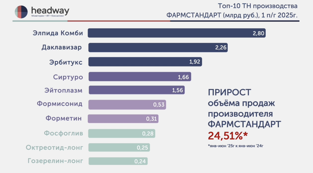 Топ-10 ЛС производителя Фармстандарт за первое полугодие 2025г.