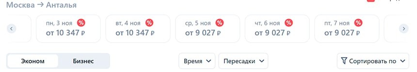 А вы ведь уже привыкли, что Крыша ТурДома не просто сообщает о распродажах, а анализирует, что там предлагается? Сегодня акцию объявила S7. Купить билеты с дисконтом можно в ближайшие 2 дня, лететь – с 1 сентября, но акция распространяется только на перелеты туда и обратно. Как оказалось, нередко можно найти хорошую цену либо туда, либо обратно, но чтобы в оба конца – придется подбирать даты. А по некоторым направлениям купить round trip с дисконтом в сентябре вообще невозможно. Из того, что понравилось: в октябре есть скидки до 40% на рейсы из Москвы в Дубай и обратно. Налегке во второй половине месяца билеты обойдутся в 19 тыс. руб. Ну а, например, по заявленной цене в 10,3 тыс. на перелет Москва – Анталья был всего по один рейс в сентябре и далее в ноябре. А на обратную дорогу скидки в декабре. Кто готов к таким round trip, как говорится, вэлком 🙂 В Сочи из Москвы и Питера аналогично: туда – минимальные цены в сентябре, а обратно – 25–26 октября, не раньше. Подробнее написали на