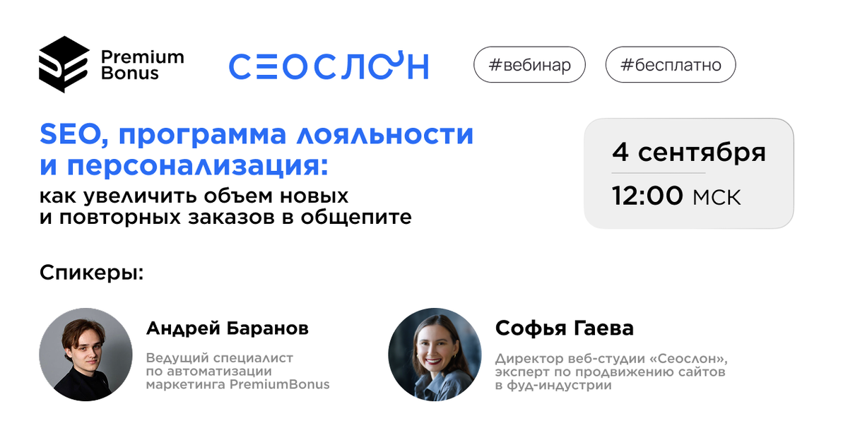 Вебинар “SEO, программа лояльности и персонализация: как увеличить объем новых и повторных заказов в общепите”
