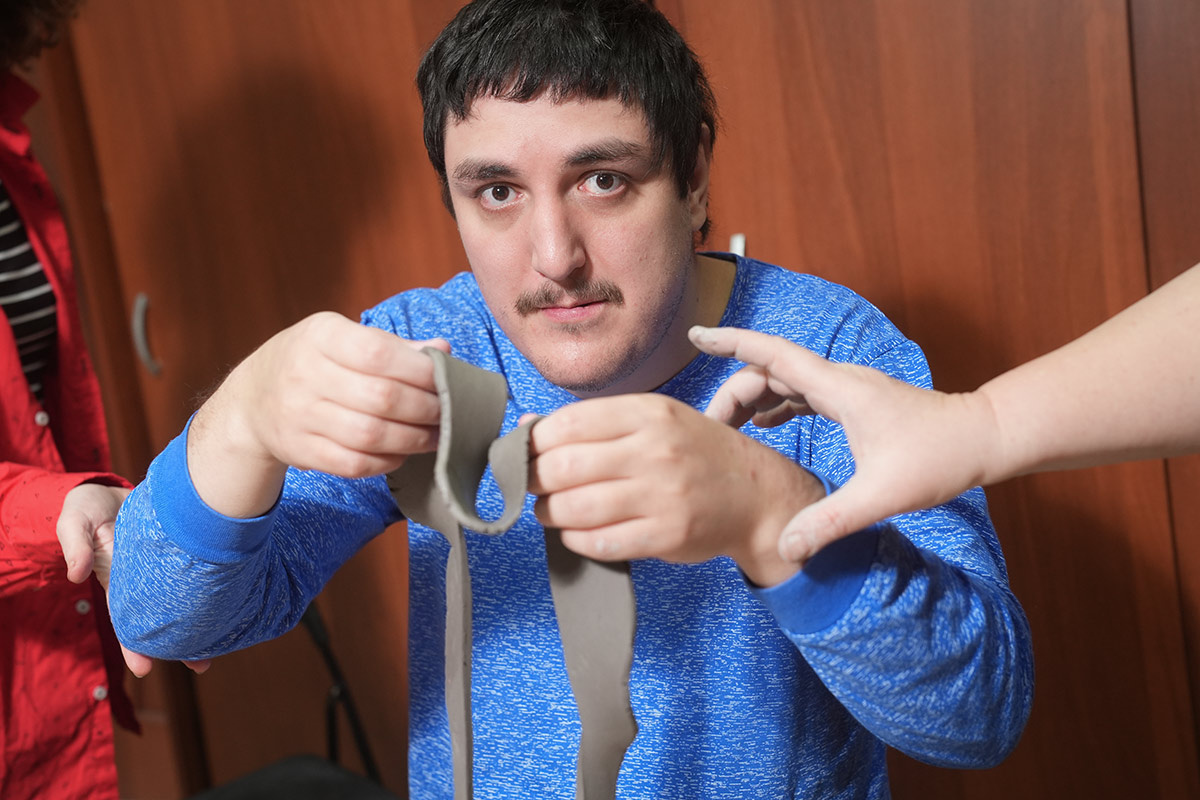 В новой Москве, в деревне Пучково есть «Дом особенных людей». Он создан фондом «Дорога милосердия», чтобы помогать взрослым людям с аутизмом и их семьям. Социальная изоляция и одиночество, когда тебе нигде не рады, – реальность, в которой живут многие люди с ментальными нарушениями. Но чем больше такой человек сидит дома в четырех стенах, тем хуже ему становится. Сергею 33 года, он не говорит, у него тяжелая форма аутизма. Дома без занятий и общения с разными людьми он окончательно замыкается в себе. А в «Доме особенных людей» он может общаться, развивать навыки самостоятельности и трудиться в керамической мастерской. Несмотря на то что Сергей не может сам говорить, ему важно общение. – Прежде чем заниматься, мы обязательно разговариваем. Я спрашиваю, как ты это видишь, как тебе кажется это лучше сделать? Без этого занятие не начнется, – говорит мастер керамической мастерской Светлана Анисифорова. Она уже 10 лет учит воспитанников центра работать с глиной. – Мы много с Сережей лепили р