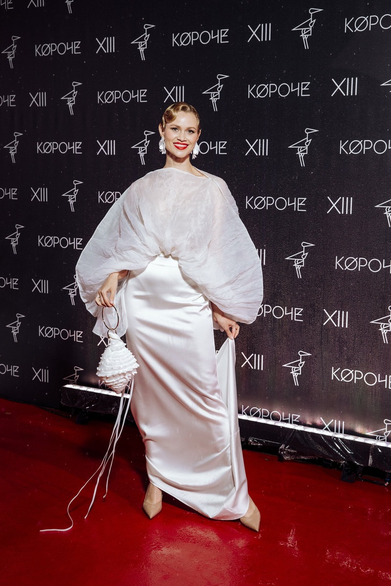 Звезда сериала «Беспринципные» Марина Доможирова посетила церемонию закрытия фестиваля короткометражного и дебютного кино «Короче» в Калининграде. Актриса вышла на красную дорожку в элегантном наряде молочного цвета, состоящем из облегающей атласной юбки и объемного верха, сделанного из матовой органзы. В качестве аксессуара артистка выбрала крупные серьги в виде белых цветов и сумку в виде морской раковины. Доможирова уложила волосы в стиле голливудской волны и сделала яркий макияж с акцентом на глаза и губы. Марина Доможирова известна своим участием в сериалах «Беспринципные», «Престиж», «Скорая помощь», «1703», «Похищение» и других проектах. Как прошло закрытие XIII фестиваля короткометражного и дебютного кино «Короче» и кто стал победителем — смотрите в репортаже Кино Mail.