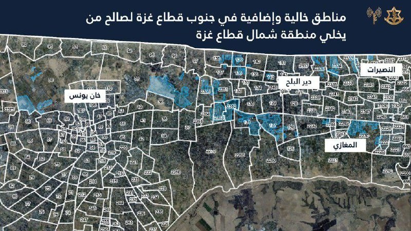 Официальный представитель ЦАХАЛа на арабском языке, полковник Авихай Адраи, начал подготовку к эвакуации жителей города Газа и северной части сектора на юг — в рамках следующего этапа операции «Колесницы Гидеона Б» и предстоящего захвата города Газа: «Эвакуация Газы неизбежна». Адраи заявил: «На фоне ложных слухов о том, что на юге сектора нет свободного места, хочу подчеркнуть: там есть огромные пустые территории — например, в центральных лагерях и в районе аль-Маваси. ЦАХАЛ обследует эти районы и показывает их вам. Эвакуация города Газа неизбежна, поэтому каждая семья, которая переместится на юг, получит гуманитарную помощь, над которой мы сейчас работаем: укрытия, распределение помощи и прямые линии подачи воды». На карте смерти цветом помечены районы в которые предлагается переместиться.