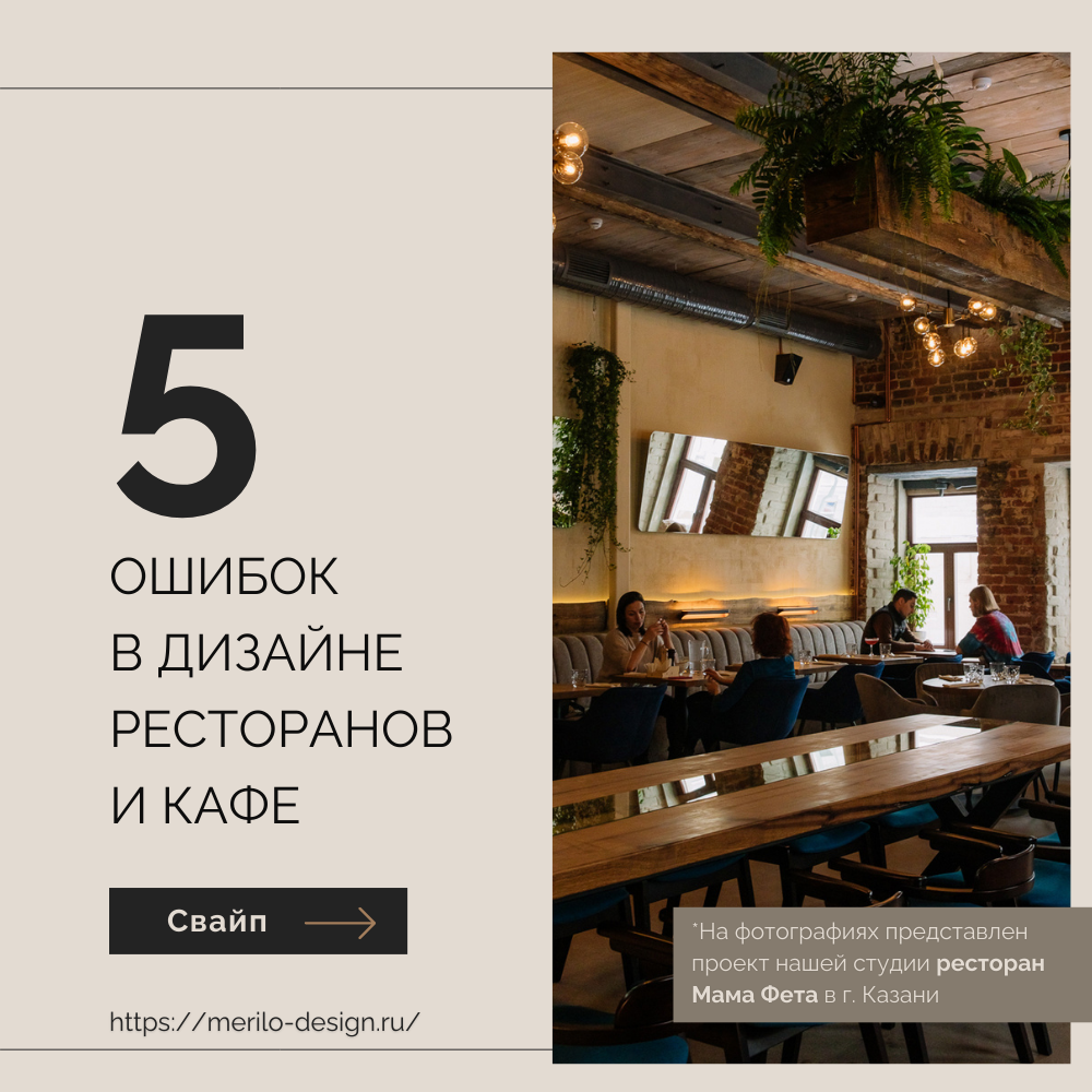 Он напрямую влияет на прибыль: средний чек, время пребывания гостей и то, вернутся ли они снова. Мы собрали 5 типичных ошибок, которые мешают заведению зарабатывать. Каждая из этих деталей кажется мелочью, но вместе они формируют у гостя общее впечатление и то, захочет ли он вернуться. 👉 Смотрите далее фотоматериалы, где мы подробно расписали какие частые ошибки в интерьерах существуют и то, как их исправить.