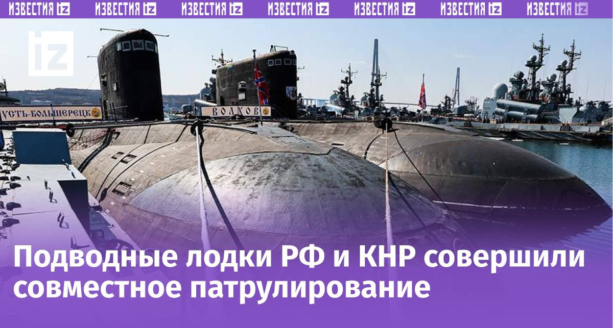 Подводные лодки Военно-морского флота (ВМФ) России и Военно-морских сил (ВМС) Народно-освободительной армии Китая (НОАК) провели первое совместное подводное патрулирование в водах Тихого океана. Об этом 27 августа сообщила пресс-служба Тихоокеанского флота. В рейде приняли участие дизель-электрическая подводная лодка «Волхов» Тихоокеанского флота и подводная лодка ВМС НОАК. Вместе они вышли на согласованный маршрут в Японском и Восточно-Китайском морях. Отработав поставленные задачи, подводные лодки отправились назад к местам базирования. Экипаж «Волхова» в среду вернулся на базу Тихоокеанского флота во Владивосток. За время похода подводная лодка прошла более 2 тыс. морских миль. Патрулирование обеспечивали корвет «Громкий» и спасательный буксир «Фотий Крылов» Тихоокеанского флота. «Основными задачами совместного патрулирования являются укрепление военно-морского сотрудничества между Россией и Китаем, поддержание мира и стабильности в АТР, мониторинг морской акватории и охрана объекто