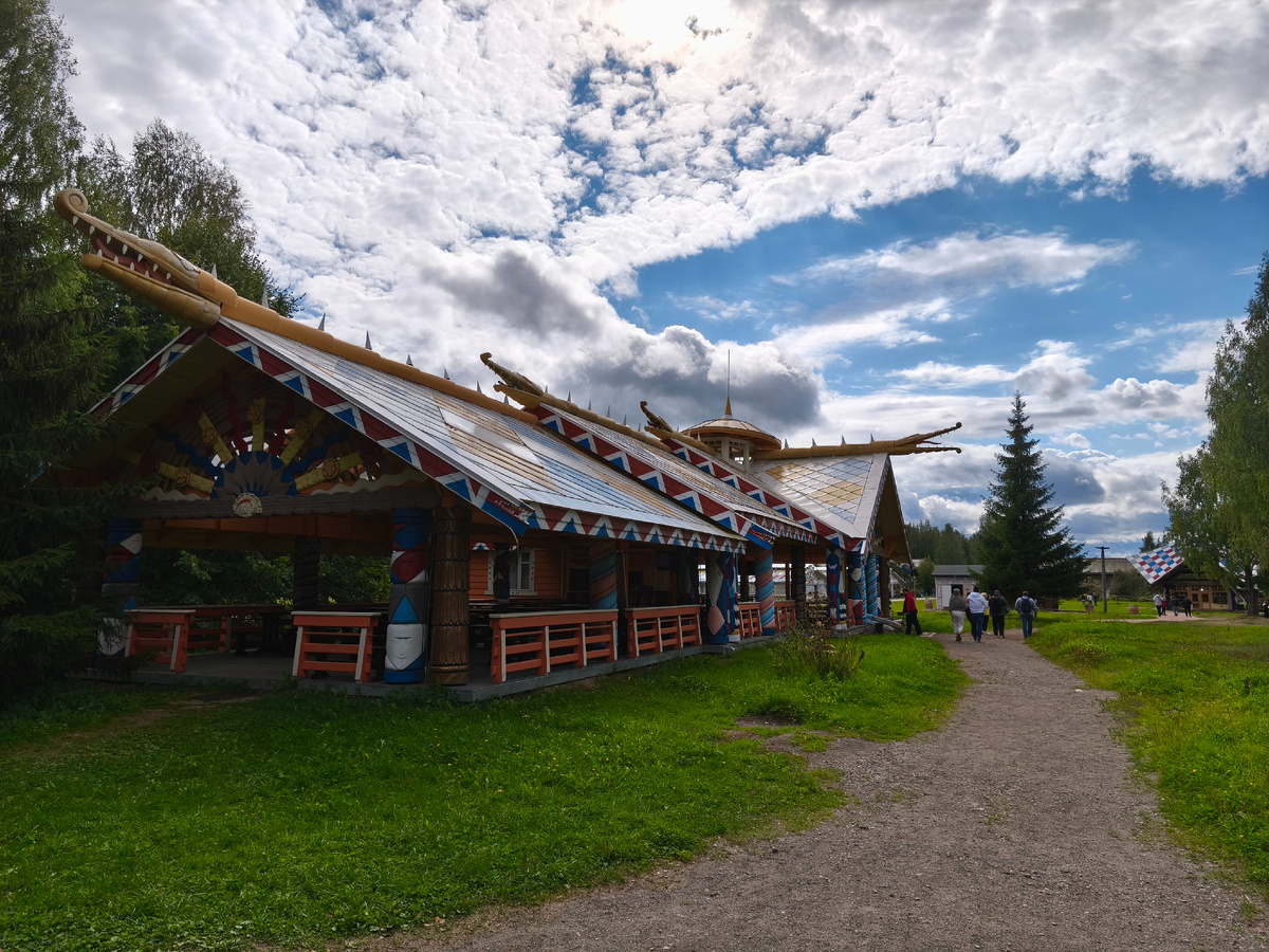 На второй день нашего круиза мы прибыли в туристическую деревеньку Мандроги. По программе мы должны были там находиться 5 часов. Желающие могли взять экскурсию, предлагалось несколько разных экскурсий, но все они нам показались скучноватыми по описанию. Поэтому решили, что как нибудь обойдемся своими силами. А потому просто гуляли по деревеньке, заходили во всякие ремесленные лавочки. Накануне вечером нам нужно было выбрать, где мы будем обедать. Предлагались два варианта: Прогноз погоды запугивал дождем и холодом, поэтому решили не рисковать и выбрали вариант с теплоходом. Не скажу, что вот прямо зря выбрали этот вариант, дождика во время обеда в итоге не случилось, но по рассказам соседей по столу чего-то невероятного там в шатре не происходило. Просто люди ели шашлык, который выбрали накануне, брали к шашлыку салаты и закуски на выбор. Деревенька носит исключительно туристический характер, все тут сделано только для туристов. Так что какой-то сельской жизни вы тут не увидите. А вот
