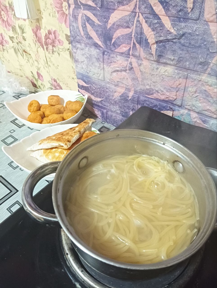 Из последних сил сварили макароны, пожарили круггетсы и конвертики из лаваша
