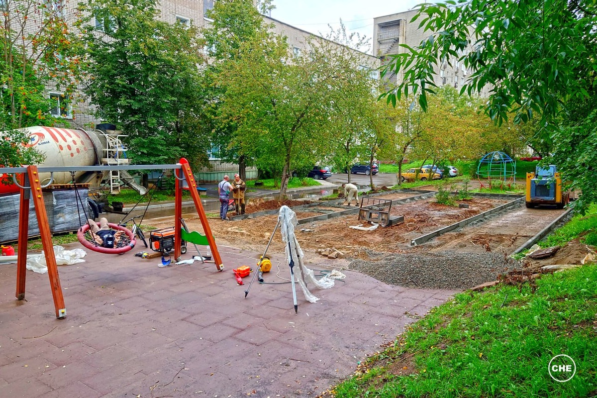 У дома №7 по улице Чепецкой расширяют детскую площадку. Жильцы этого дома так хорошо распробовали преимущества участия в ППМИ, что год от года делают комфортнее свой двор. Это удачное предложение: получить благоустройство на миллионы рублей на своей придомовой территории, собрав порядка десяти процентов от стоимости работ.