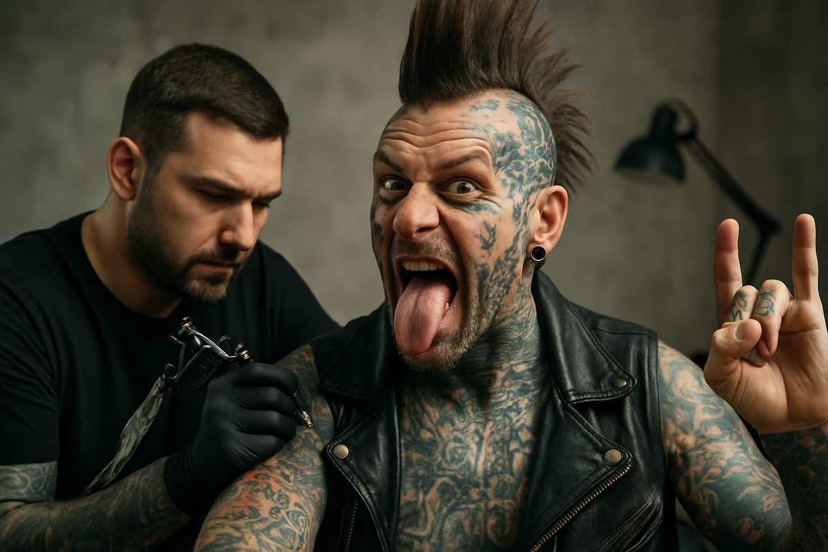Маленькое сердечко на запястье или аккуратный знак на плече — это привычно. Но что, если человек решает превратить своё тело в сплошной комикс, дополнить его рогами, разрезанным языком и заострёнными зубами? Тут уже невольно задаёшься вопросом: это искусство или безумие?