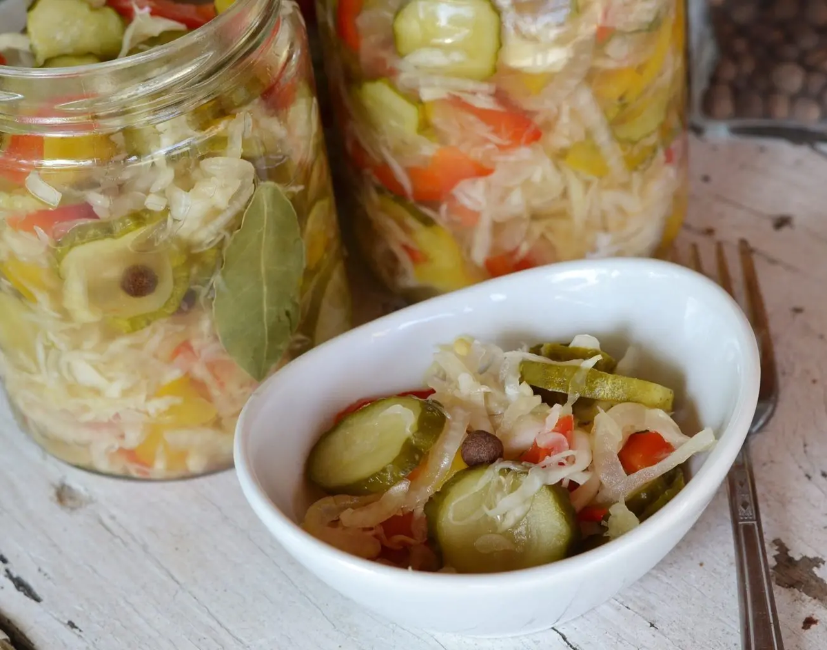 Это ещё одна моя давняя зимняя заготовка. Салат получается красочный и сочный. Чаще всего готовлю его из овощей с моего огорода: огурцов, капусты, лука и разноцветного болгарского перца. Тут есть секрет - перец нужен зрелый, та самая паприка, то есть желательно красный болгарский, но подойдет и разноцветный. Мой венгерский салат получается нежным на вкус, но если вы предпочитаете более острый вкус, предлагаю добавить нарезанный перец чили или стручок зеленого горького перца. 1 кочан белокочанной капусты (около 1 кг)