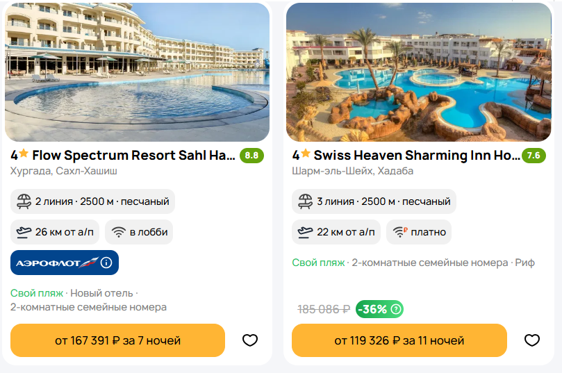 🔥 Туры в Египет "всё включено" из Санкт-Петербурга на 7-14 ночей🔥 Парочка выгодных вариантов: Тур в отель 4⭐️Swiss Heaven Sharming Inn Hotel, 3 линия, Шарм-эль-Шейх, от 11 ночей, всё включено, прямой чартерный. Вылет 5 сентября, от 59663 руб/чел Забронировать: https://checkintime.ru/tai9 Тур в отель 4⭐️Sunny Days El Palacio Resort & Spa, до пляжа 70 м, Хургада, от 7 ночей, всё включено, регулярный рейс. Вылет 28 августа, от 62825 руб/чел Забронировать: https://checkintime.ru/737m Тур в отель 4⭐️Flow Spectrum Resort Sahl Hasheesh, 3 линия, Хургада, от 7 ночей, всё включено, регулярный рейс. Вылет 4 сентября, от 83696 руб/чел Забронировать: https://checkintime.ru/m1wb Все предложения: https://checkintime.ru/uq3l ⚠️Цены на момент публикации и указаны на одного человека с перелетом и проживанием. Переходя по ссылке цена отобразиться на 2-х человек 🏖 Поиск туров | ✈️Авиабилеты