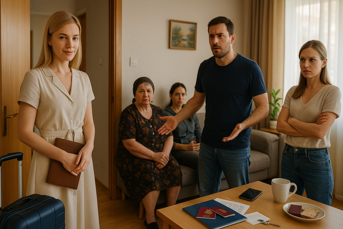 Женщина прошла на кухню, где на столе разложила авиабилеты и путёвку в гостиницу. Рядом положила конверт с деньгами — часть отложенных на отпуск средств, которые теперь понадобятся мужу для содержания внезапных гостей. Всё было рассчитано на одну персону, как и планировалось изначально.