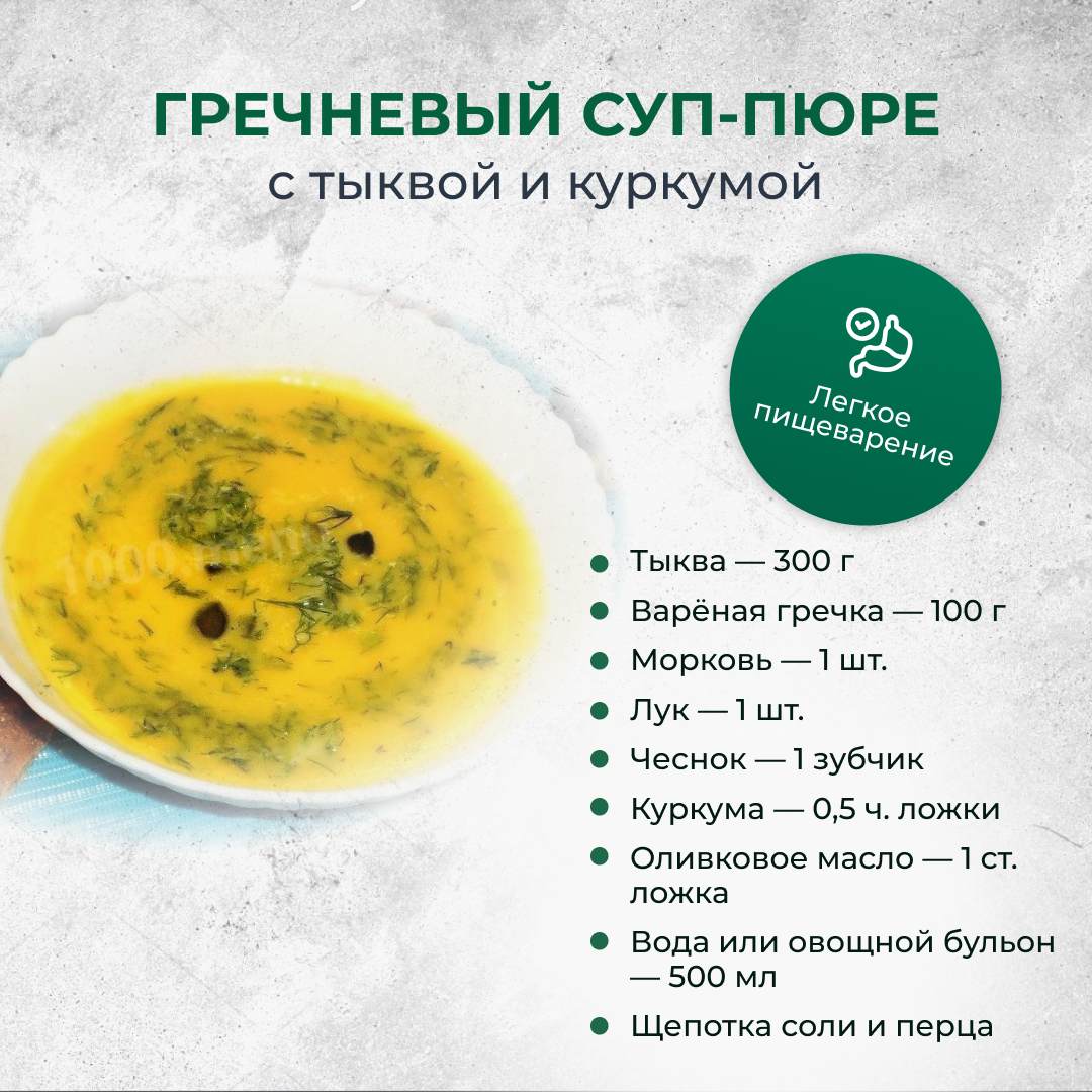 💡 Помогает снять воспаление в ЖКТ, поддерживает желчный отток, подходит при чувствительном пищеварении и сниженной энергии. 🛒 Ингредиенты: 👩🍳 Приготовление: Такой суп-пюре не только согревает и насыщает, но и помогает наладить работу печени, кишечника и желчного пузыря. Куркума усиливает отток желчи и обладает мягким противовоспалительным действием. Отличный выбор для восстановления пищеварения и энергии!