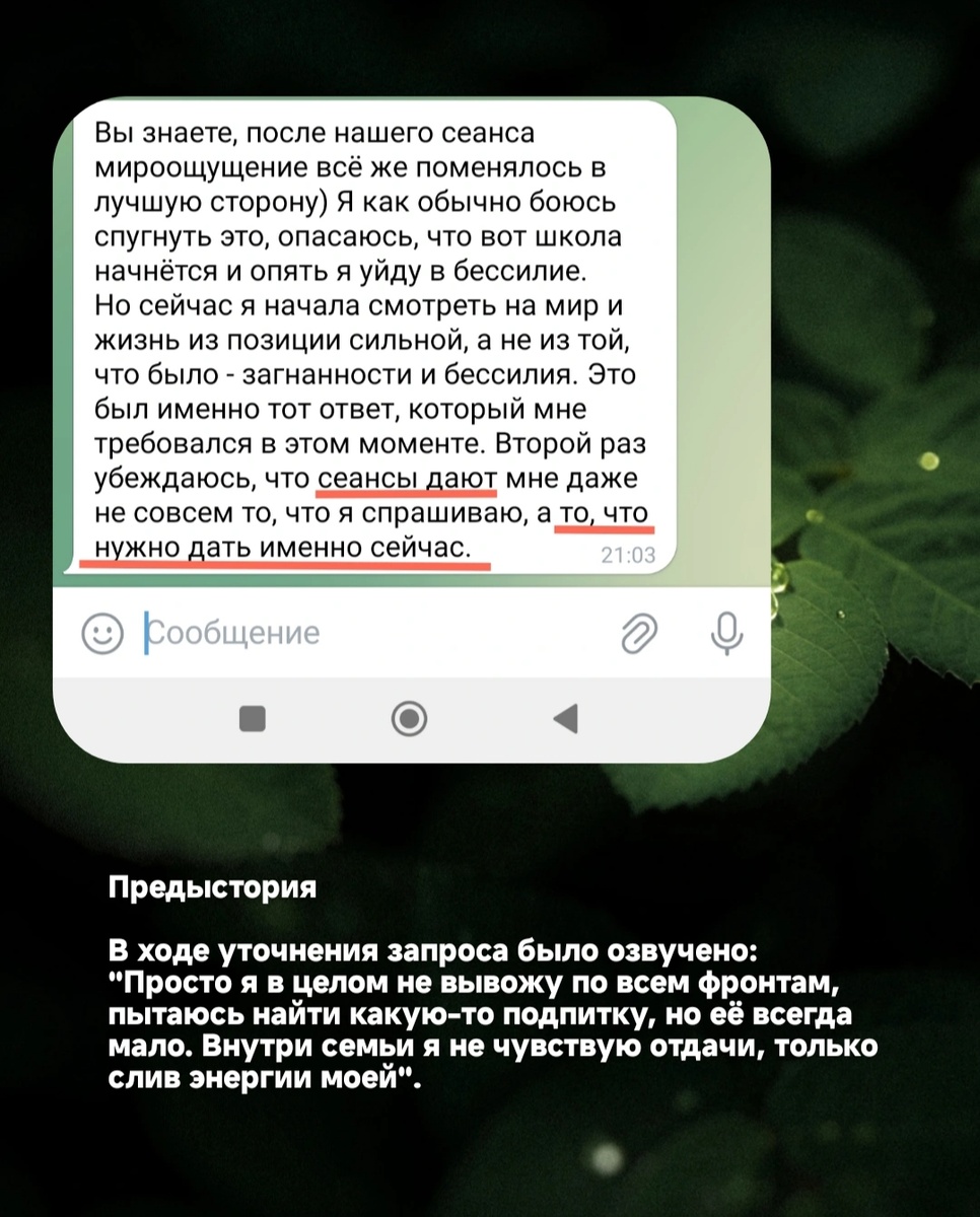 В сеансе регрессивной терапии всегда происходит то, что на самом деле нужно человеку, так как этот процесс курируется Высшими аспектами человека. Поэтому, дорогие, как только вы записались на сеанс регрессии, отпустите контроль и все ожидания. Доверьтесь, что всё произойдёт наилучшим для вас образом 🪷 Для связи со мной Меня зовут Татьяна, я дипломированный регрессолог, гипнотерапевт провожу сеансы регрессии в прошлые жизни и к Высшим аспектам. Помогаю найти корень вашей проблемы, чтобы проработать его и исцелить психотравму. Работаю с любым запросом. А также делаю нумерологические расклады по методу Матрица судьбы. Практикую с 2020 года на постоянной основе. Буду рада стать вашим проводником в этот удивительный опыт. Провожу очень бережно обладаю сильной эмпатией и чувствованием клиента-регрессанта. Провела более 1000 сеансов. Больше информации в подборках, а также по ссылкам: Обо мне и чем я могу быть вам полезна Подробнее о регрессии Регрессия с проработкой Регрессия на осн