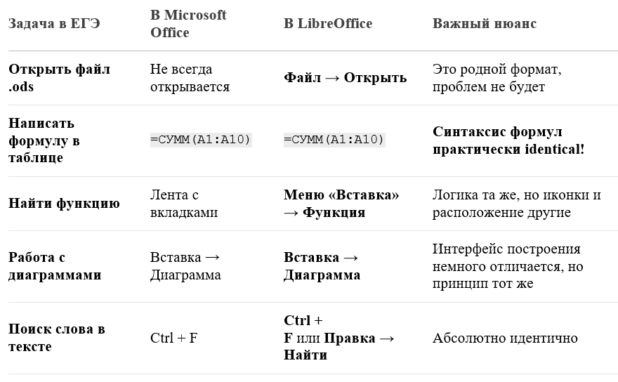 ✅ Сравнительная таблица функций: что было в Excel/Word, а что теперь в Calc/Writer. Бол