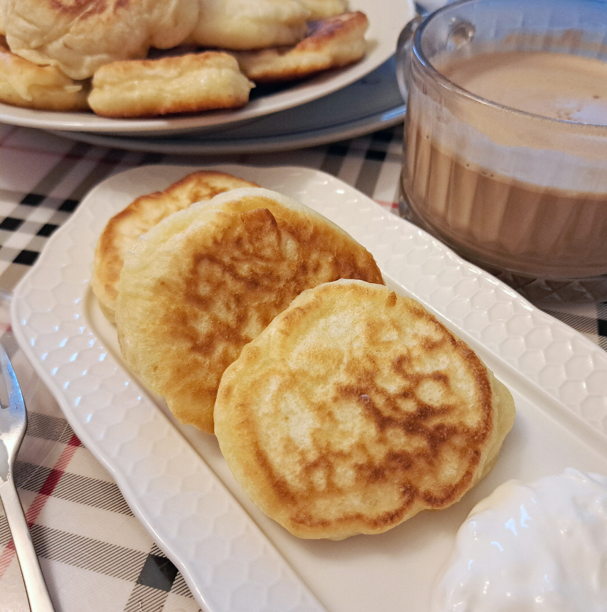 Могу сказать, что это самые вкусные оладушки, что я готовила. Если заменить муку пшеничную на полбяную, будет ещё и ПП. Смешать всё, кроме соды. Когда масса станет однородной, добавить соду, перемешать и больше не перемешивать. Дать настояться минут 10 и выпекать с двух сторон, на среднем нагреве.