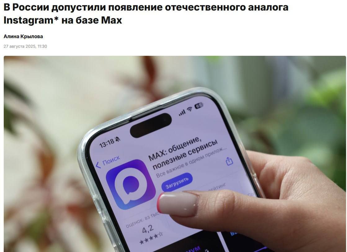 ⚡️В России появится отечественный аналог Instagram* на базе Max
