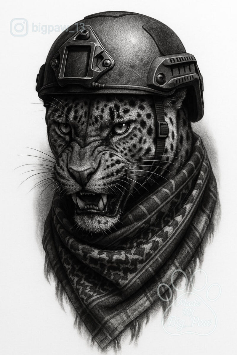 #2699 Подборка по запросу подписчика - Барс ,взгляд из подлобья(только голова). Ч/б в каске современной. На шее повязана арафатка. 🧠 SYNTX 💳 Донат 😎 НейроБро 😎 Эскизы без вотера 💀 Эскизы от нейросети #барс #милитари #животные #эскиз #тату #татуировка