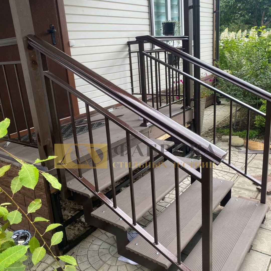 Уличная лестница с площадкой: сочетание ДПК и лиственницы Когда речь идёт об уличной лестнице, важно найти баланс между надёжностью, красотой и долговечностью. На примере этой конструкции видно, как можно совместить современные материалы и тёплую натуральность дерева. 🛠 Конструкция 🎨 Дизайн и стиль Тёмно-коричневый ДПК и светлая лиственница образуют контраст, который подчёркивает архитектуру дома. Такая лестница подойдёт как для современного минимализма, так и для классических фасадов из кирпича или штукатурки. Особенно эффектно смотрится большая площадка — на ней удобно задержаться, поставить уличную мебель или кашпо с цветами. 💡 Преимущества 🔧 Дополнительные возможности 💡 Совет: если хотите лестницу «на десятилетия без забот» — комбинируйте металл, ДПК и лиственницу. Это оптимальный баланс практичности и уюта. 🔗 Примеры уличных лестниц можно посмотреть здесь: fabrika-lestnicy.ru