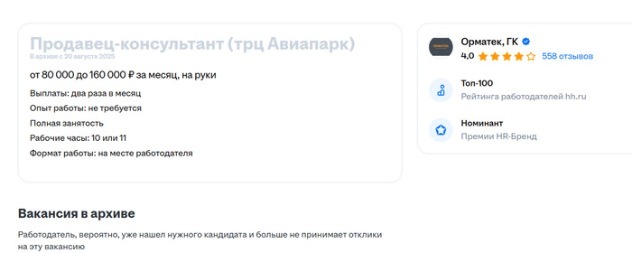 Вакансия выглядела вот таким образом, от 80000 до 200 000, неплохо, даже если поначалу получать около 80 000 и со временем вырасти до 150/200, почему нет, казалось бы?