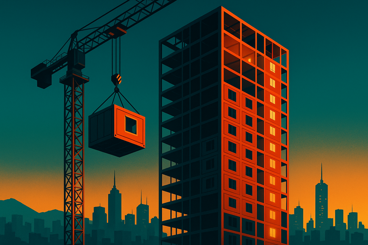 В одну строку. Дом делают на заводе. На площадке - собирают. Всё. Китай подменил хаотичную площадку производством. Комнаты-модули, санузлы-«капсулы», фасадные панели, инженерные узлы - выходят из цеха как серийный товар.
