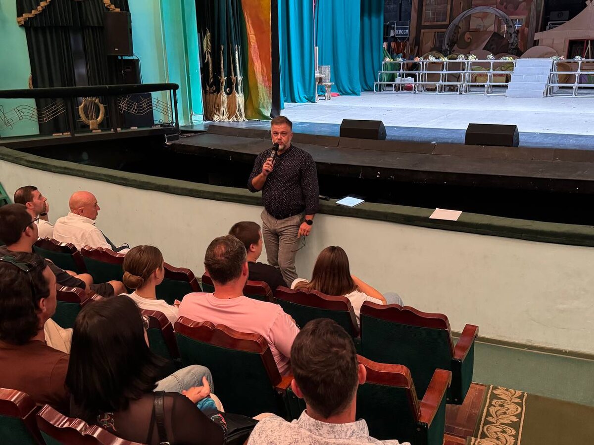 Традиционное общетеатральное собрание🎭 Сегодня в «Царицынской опере» состоялось общетеатральное собрание, объединившее сотрудников всех цехов, артистов и музыкантов. Мероприятие было посвящено открытию XXII театрального сезона и перспективам развития театра. Директор театра Сергей Гринев поздравил коллектив с началом нового творческого года, пожелав успехов и вдохновения. Он поделился планами на сезон, обозначил важные детали предстоящих гастролей коллег из Ижевска и ответного визита волгоградских артистов в театр оперы и балета Республики Удмуртия, которые состоятся уже совсем скоро. Особое внимание на собрании было уделено вопросам безопасности. С профилактической беседой о различных видах мошенничества и правилах поведения в сети выступил помощник прокурора Краснооктябрьского района Вячеслав Александрович Тореев. Его выступление было направлено на повышение бдительности сотрудников театра и защиту от возможных кибер-преступлений.