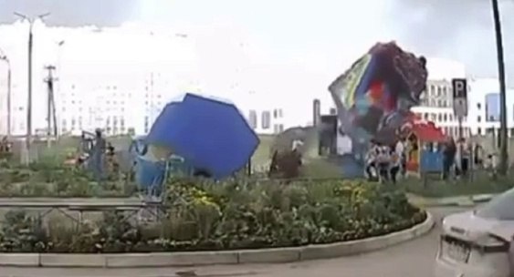 В Уфе надувной батут перевернулся из-за сильного ветра.