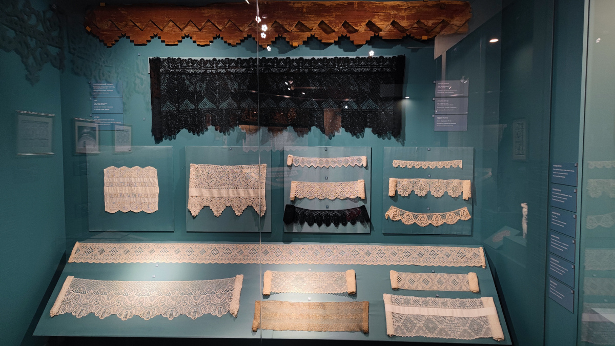 Особое восхищение вызывают тончайшие кружева XVIII–XIX веков — их ажурные линии словно парят в воздухе, создавая лёгкость и изящество, которые невозможно оторвать взгляд.