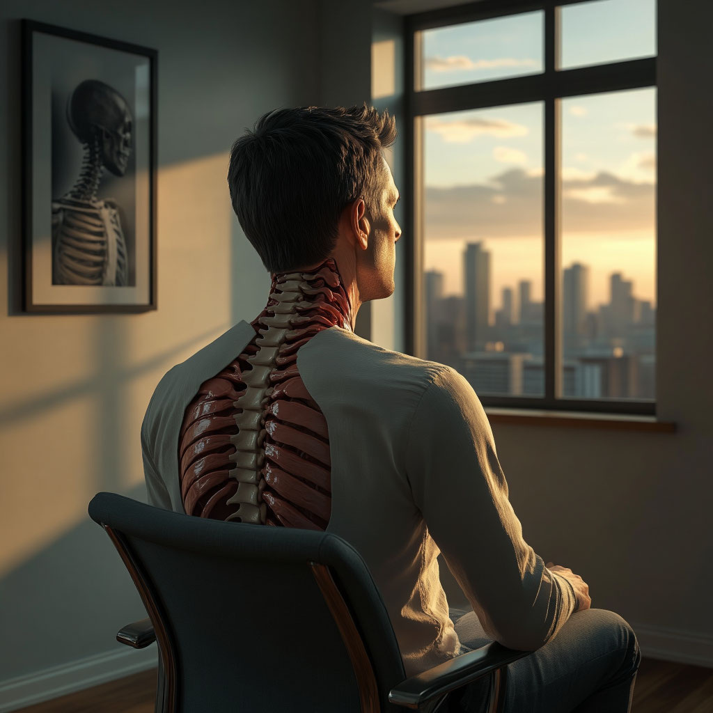 Онемевшие пальцы, головные боли, звон в ушах — так шея, закованная в ошейник приличий, пытается стряхнуть ярмо молчания. Вы годами кивали «да», глотая «нет», и теперь позвонки скрипят, как несмазанные петли двери, которую пора распахнуть. — Грудной отдел — саркофаг для сердца.