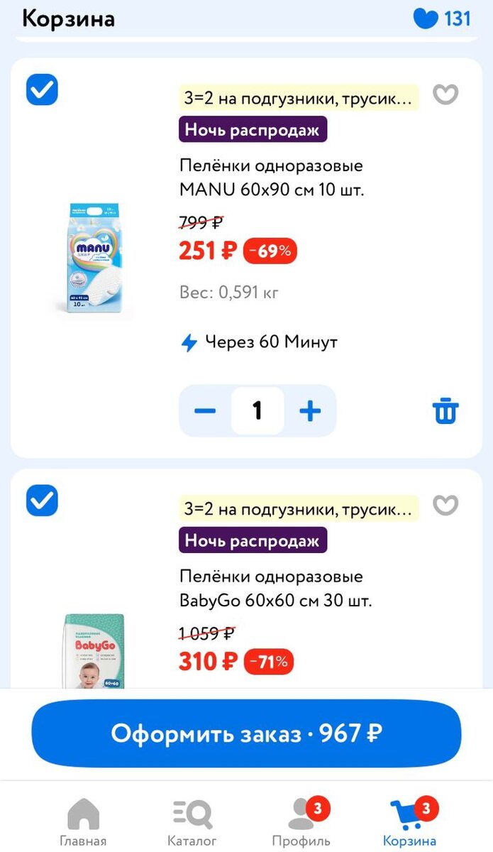 Такая хорошая акция в ДМ на пеленки. Они всегда нужны.