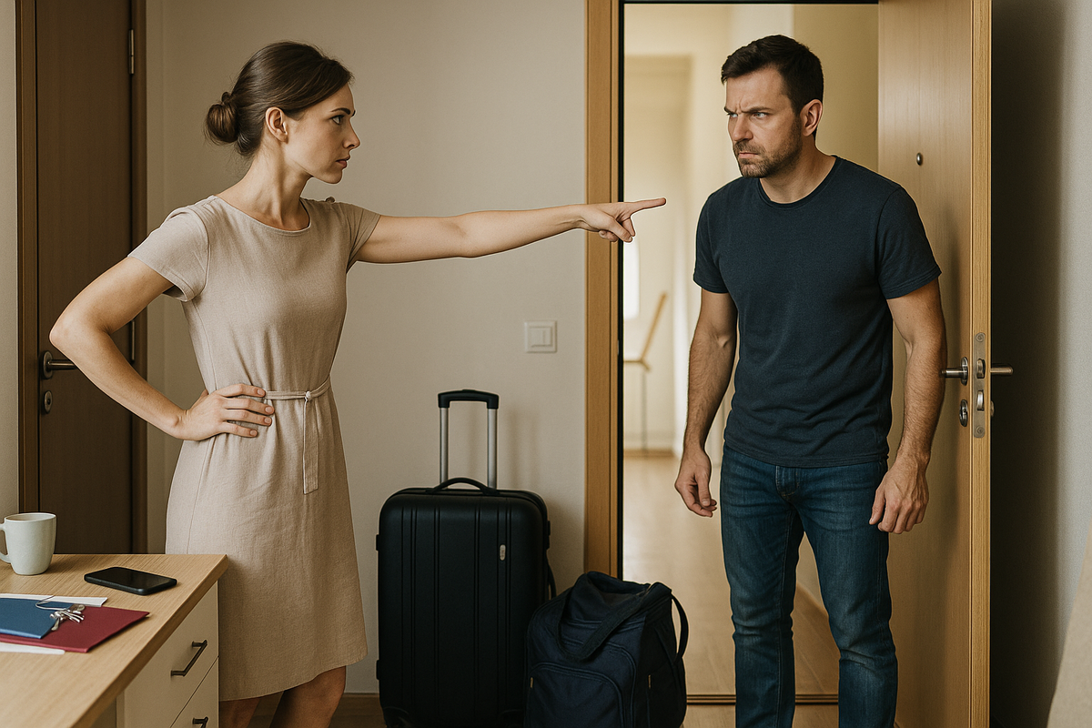 Василий вернулся домой в обычное время. Мужчина снял куртку, повесил её на вешалку и только тогда заметил багаж у двери. Взгляд Василия метался между чемоданами и женой, пытаясь понять происходящее.