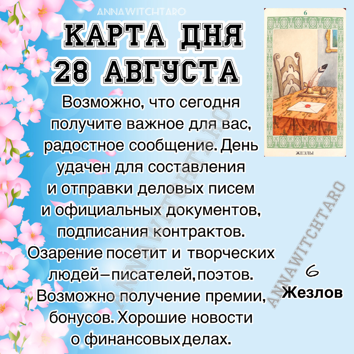 ☀️КАРТА ДНЯ 28 АВГУСТА☀️