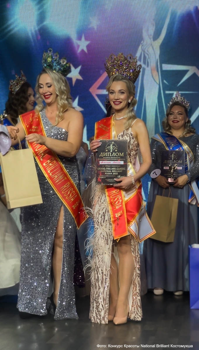 Всероссийский конкурс красоты National Brilliant Russia 2025 проходил в карельской столице с 18 по 22 августа. В нем приняли участие жительницы Костомукши. Об этом сообщили в паблике 64 параллель онлайн. Анжелика Яккола привезла домой главный титул Всероссийского конкурса красоты National Brilliant Russia 2025 в своей категории – гран-при «Миссис Классик» и дополнительный титул – «Миссис Стиль». Юлия Антипина стала четвёртой вице-миссис National Brilliant Russia 2025, а также получила титул в номинации «Достижение». Организаторы конкурса пишут, что его задачами является возможность участницам проявить свои таланты и сформировать уверенность в себе для дальнейшего роста и развития в профессии, в творчестве, бизнесе, а также в культурной и общественной сферах.