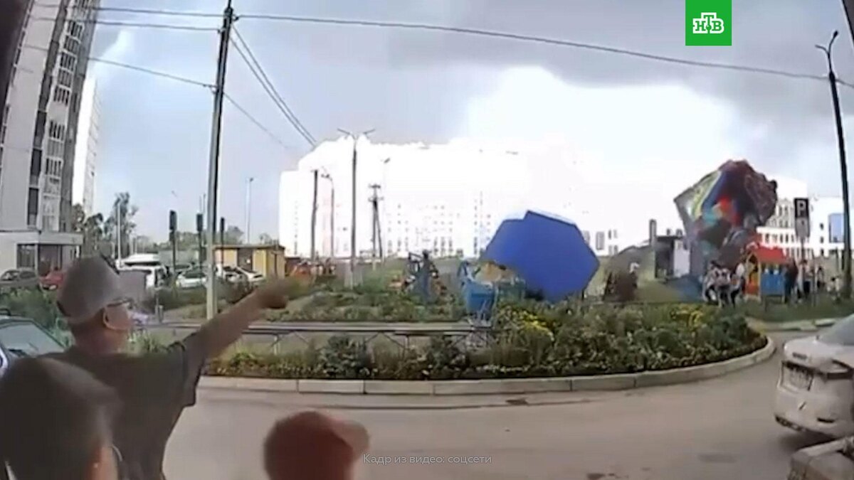 В Уфе из-за сильного ветра перевернулся батут, когда на нем находились дети. Есть пострадавшие.