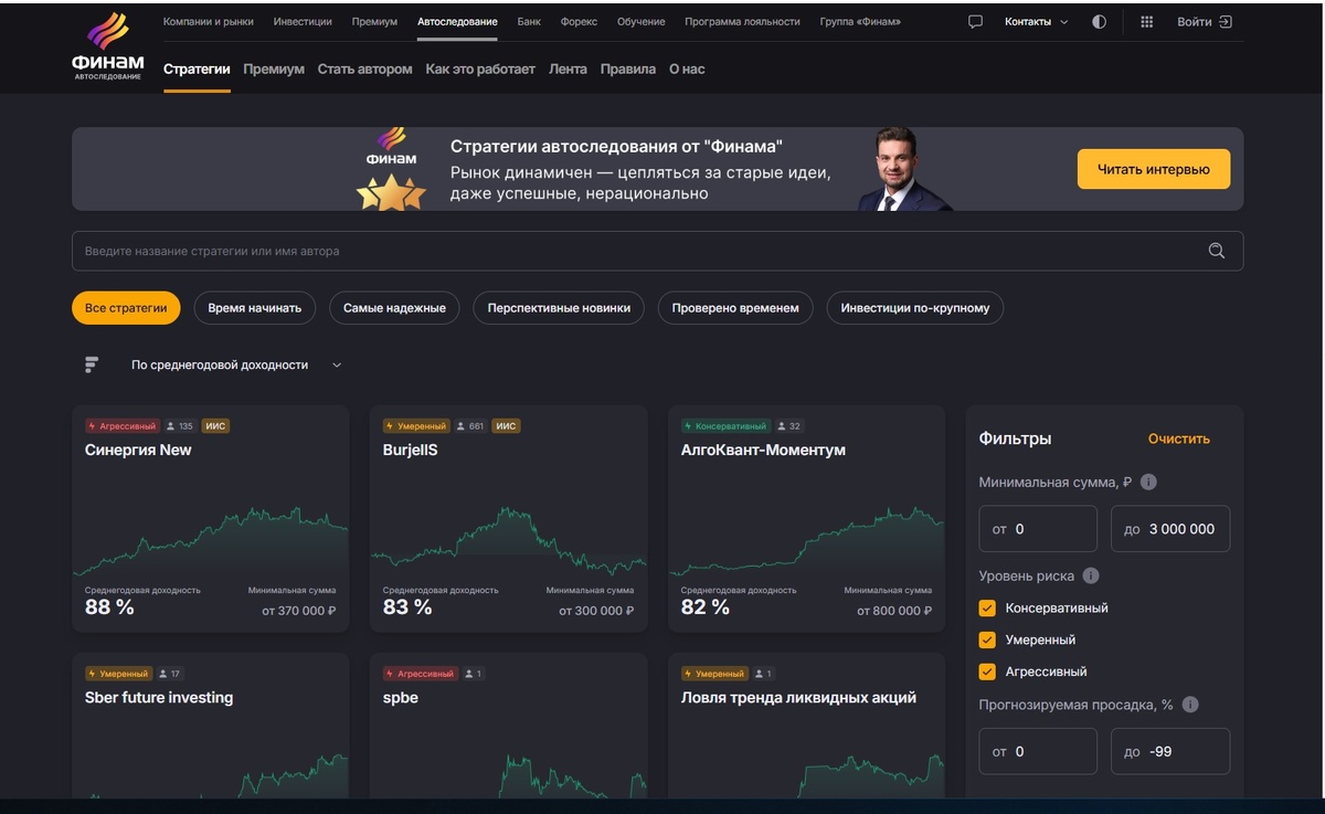— Выбирайте управляющих с историей от 3 лет и просадками не более 20%.