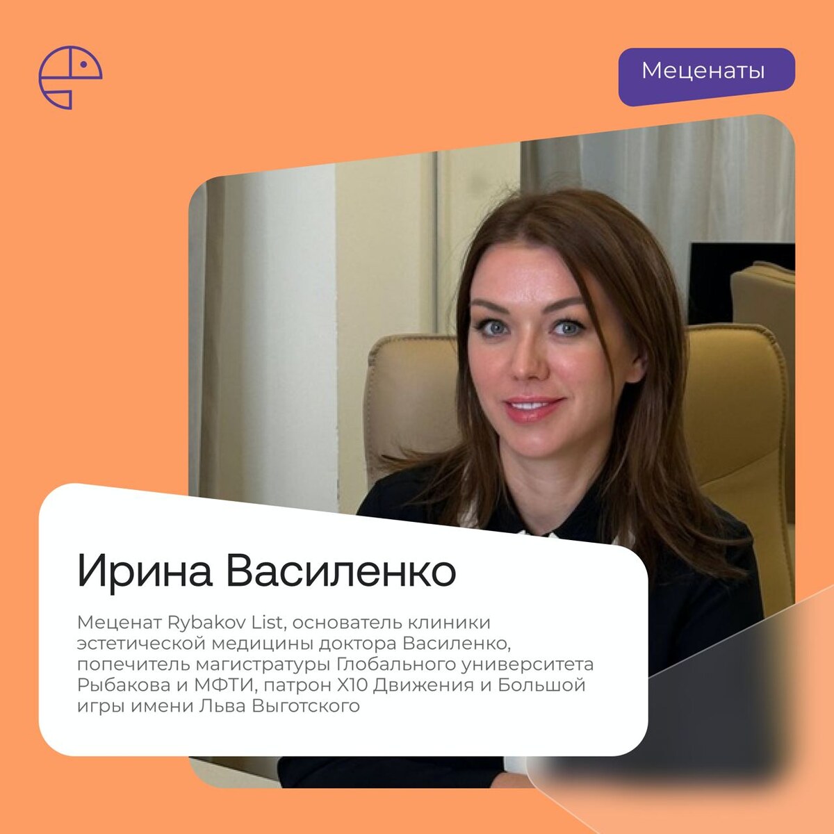 Мотивация поддерживать изменения: меценаты Рыбаков Фонда Что движет людьми, которые создают больше, чем бизнес? Чем влияние отличается от помощи? С чего начинается культура меценатства? Мы задали эти вопросы меценатам и участникам Rybakov List — предпринимателям, которые инвестируют в образование, поддерживают лидеров, развивают социально значимые проекты и становятся соавторами изменений с долгосрочным эффектом В карточках — личные истории Ирины Василенко, Артура Маркарова и Анны Курбатовой. Они делятся тем, что повлияло на их выбор и рассказывают, как пришли к меценатству Листайте, чтобы узнать, с чего начинается мотивация поддерживать и усиливать изменения >>