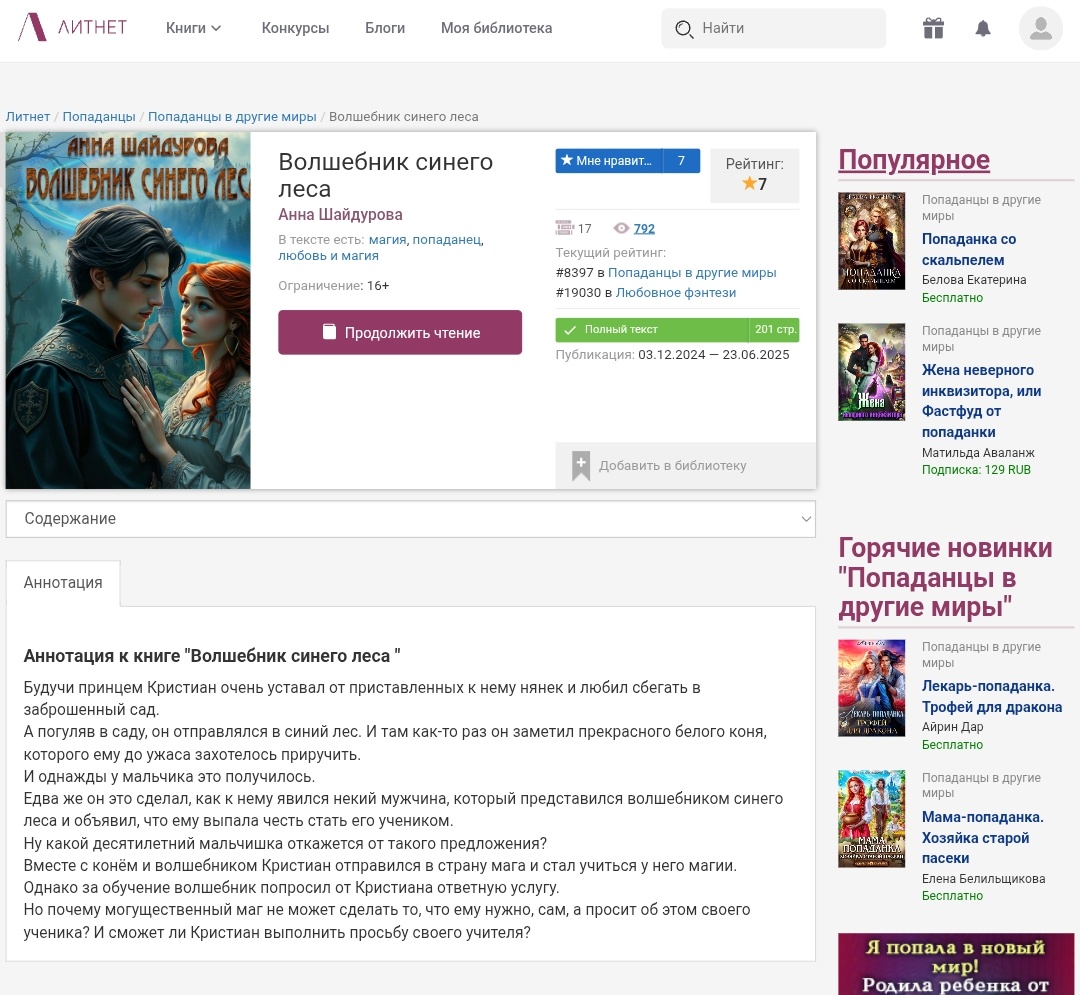 5. Роман «Волшебник синего леса».