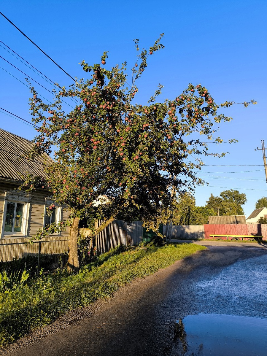 Все такие яблони на семенном подвое это настоящая красота. В этом году разница между дневными и ночными температурами очень высока и яблоко окрасилось особенно сильно. На улицах и во дворах города повсеместно такие нарядные и красивые яблони.
