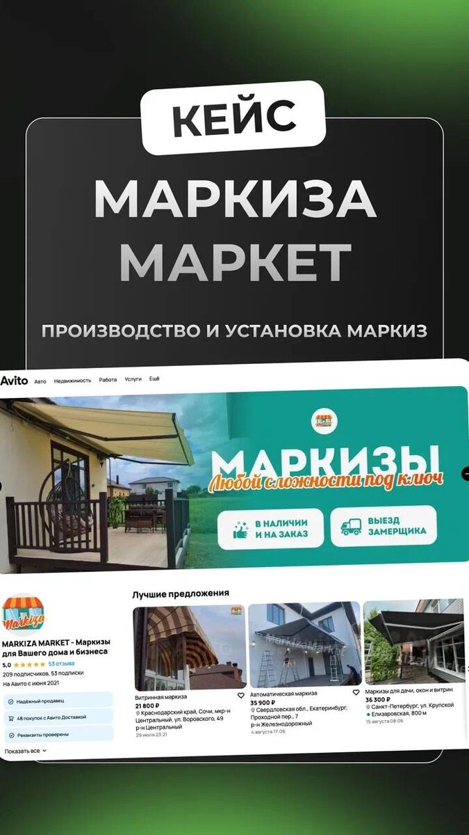 Кейс. Продажа маркиз на Авито #кейс_моретрафика Компания: Маркиза Маркет Ниша: производство и установка Маркиз ГЕО: Москва, Санкт-Петербург, Казань, Калуга, Сочи, Екатеринбург, Краснодар Особенность: 4 года на Авито Боль: проблемы с уровнем сервиса, нецелевые лиды, большие расходы. Клиент обратился в наше агентство, чтобы масштабно улучшить свою РК: - профессионально упаковать объявления - добавить новые города - убрать расходы на нецелевые лиды - заменить неэффективные объявления - исключить блокировки из за размещения дублей. - повысить уровень сервиса (на момент начала работы был всего 40%) Что мы сделали👇 Определили ЦА и сформировали УТП ЦА: жители частных домов, и владельцы кафе и ресторанов. УТП: • Лучшие цены от производителя • Опыт работы более 10 лет • Доставка во все регионы РФ • Профессиональный монтаж • Гарантия 12 мес • Постгарантийное обслуживание Проанализировали спрос и конкуренцию Примеры топовых запросов: маркиза для терассы, маркиза для окон и т.д. Уника