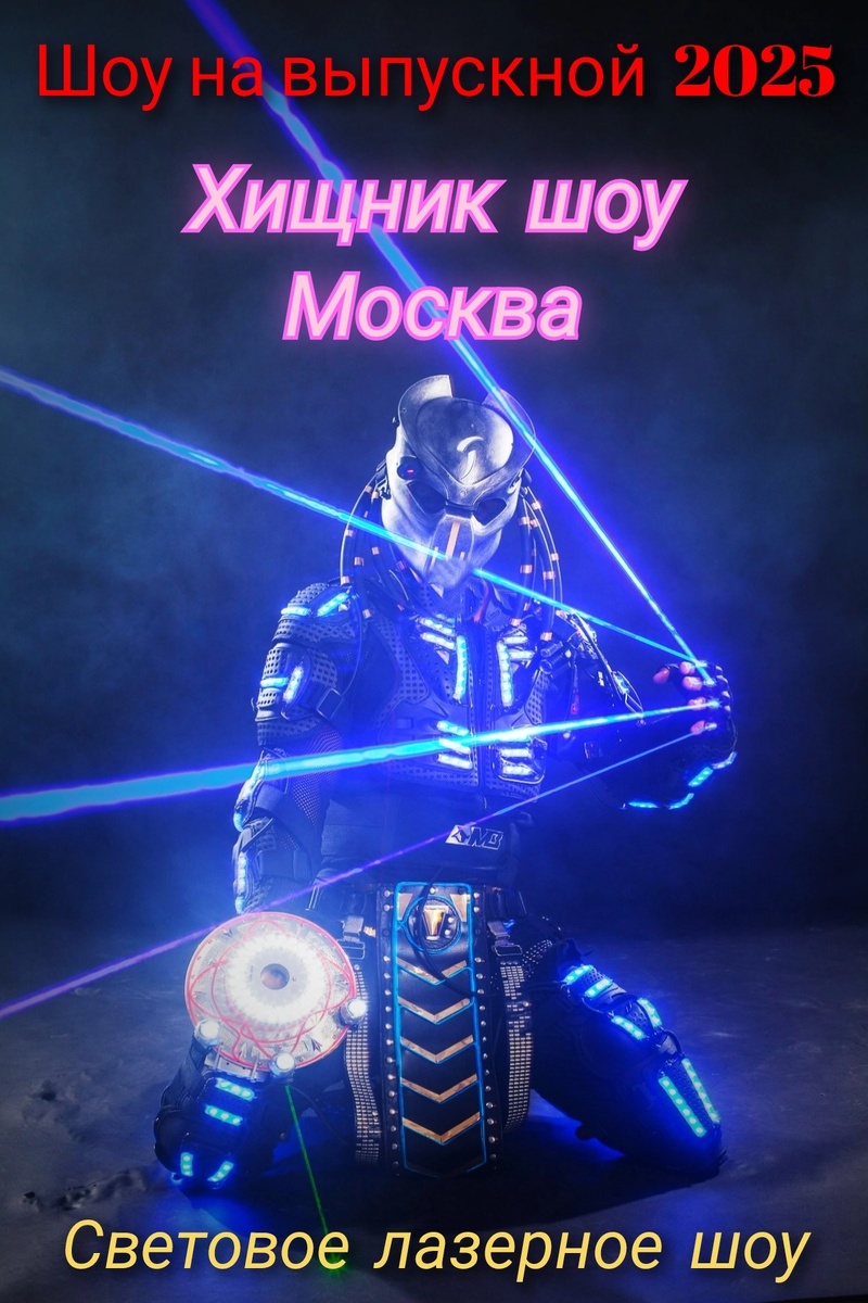 1. «Хищник шоу» — для смелых и энергичных Это динамичное и завораживающее зрелище,основанное на культовом фильме. Артисты в светящихся костюмах и масках Хищника создают невероятную атмосферу космической охоты. Идеально для подростков и взрослых, которые ценят фантастику, экшен и современные спецэффекты. Яркие лазерные когти, неоновая кровь и невероятная пластика артистов делают это шоу настоящим хитом любой вечеринки.