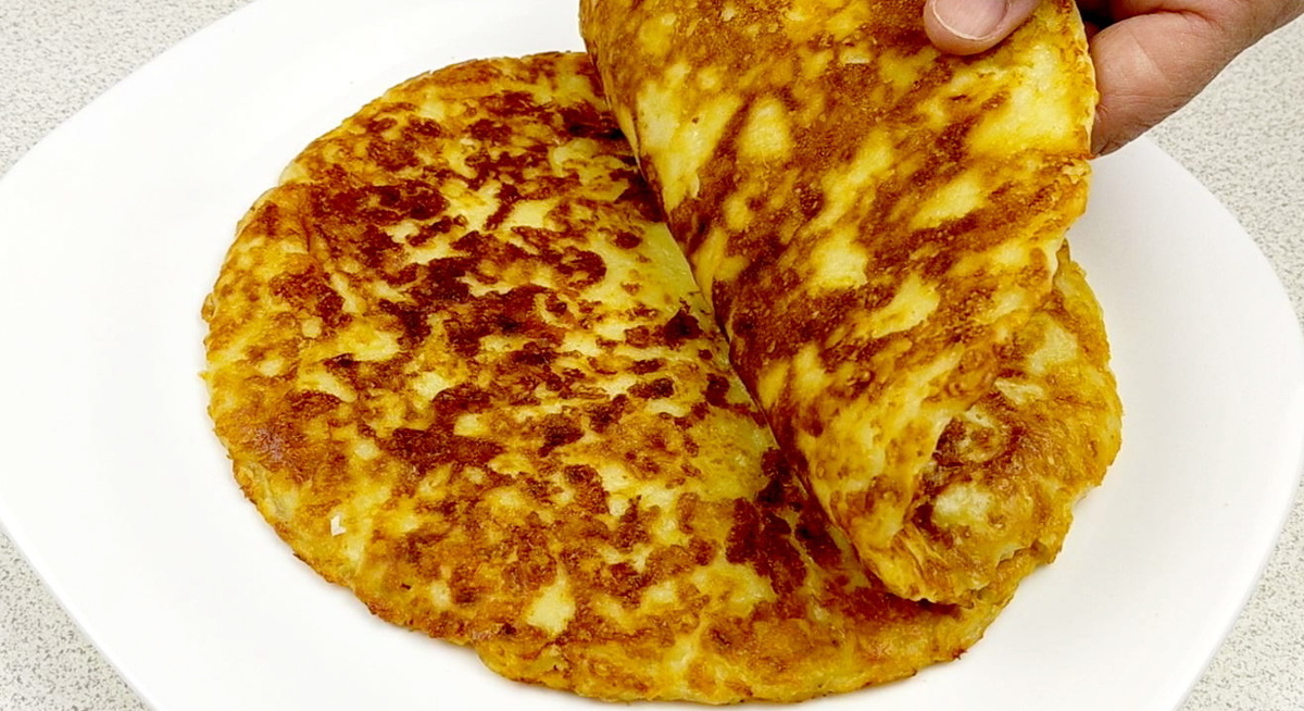 Распределите тесто по сковороде, чтобы получилась красивая и ровная лепешка.