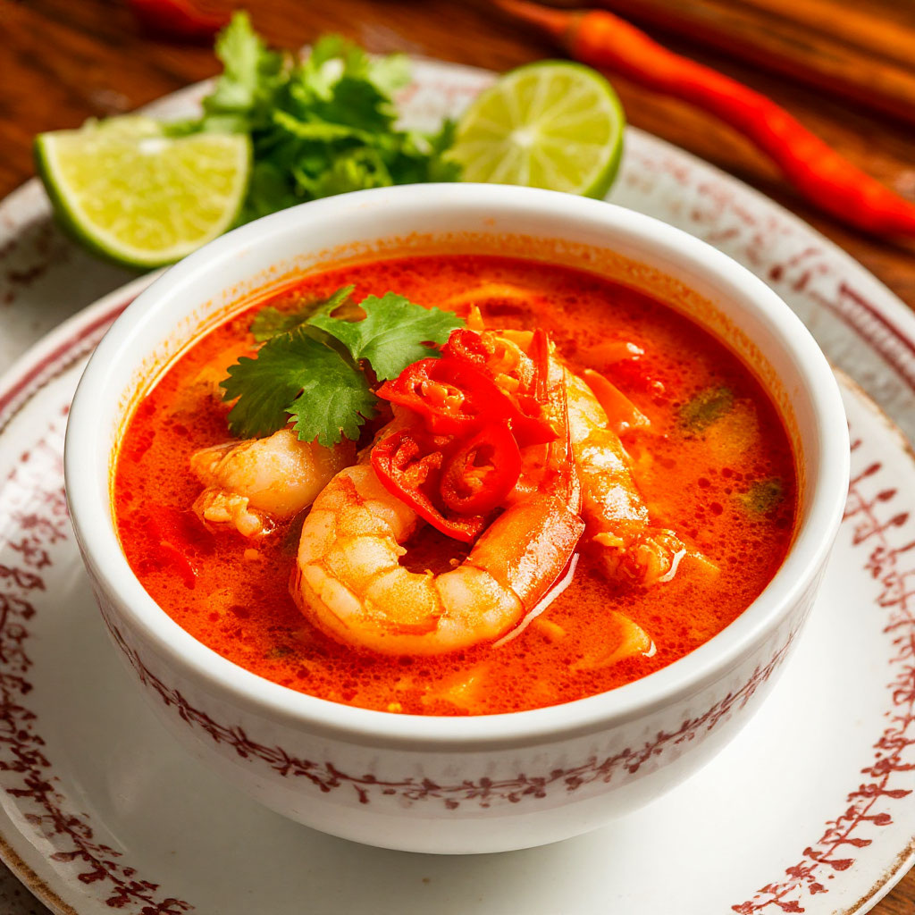 "Том Ям" — один из самых известных тайских супов, сочетающий в себе кисловато-острый вкус с ароматом трав и морепродуктов. Его название происходит от тайского слова tom (дорожка) и yam (перец), что отражает его характерные ингредиенты. Этот суп богат витаминами и обладает легким сладковатым оттенком, который балансирует с пряными нотками. Его можно приготовить с креветками, курицей или грибами, что делает его универсальным для любого вкуса. Ингредиенты: Инструкции: Этот рецепт сохраняет традиционный вкус, адаптировав его для домашнего приготовления. Приятного аппетита!