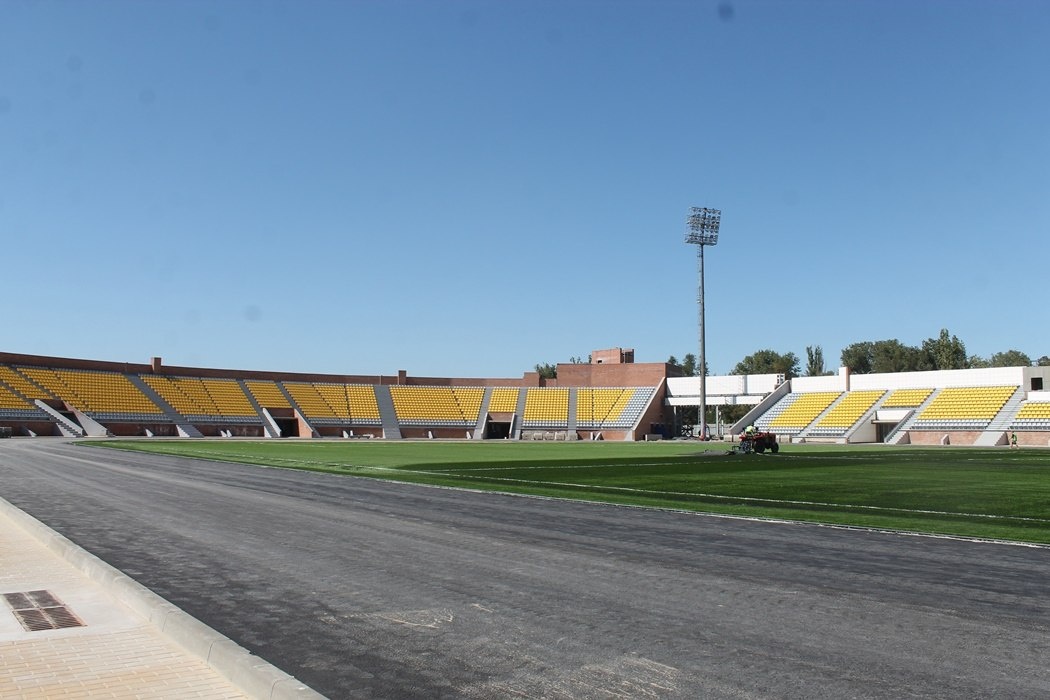 Строительная готовность объекта приближается к 70%. Уже выполнен монтаж трибун, инженерных сетей и дренажа, сидений на трибунах. Сейчас завершаются работы на южной трибуне, на фасаде и по благоустройству территории, формируется футбольный газон.
