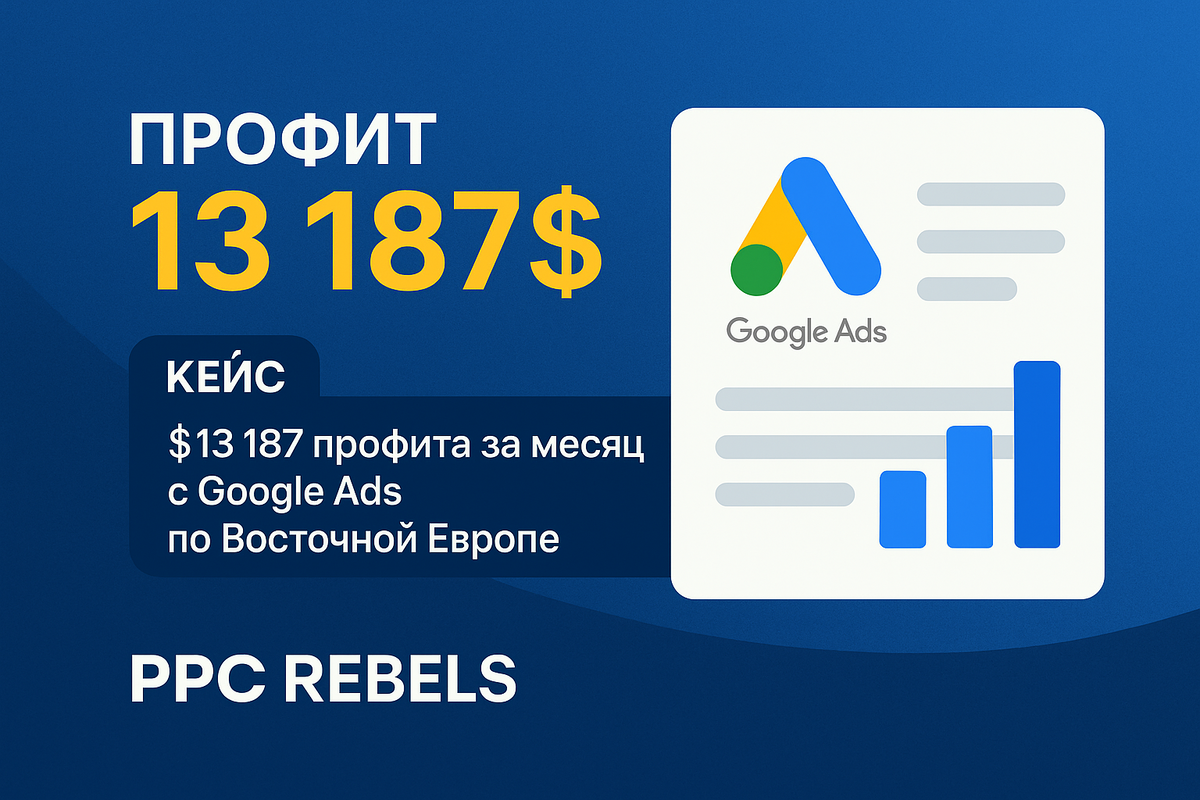 Привет, коллеги! Здесь PPC Rebels. Расскажем, как мы сделали $13 187 чистого профита на заливе в Восточную Европу через Google Ads. Кейс максимально практичный: цифры, креативы, фарм аккаунтов, клоака, работа с витриной и, конечно, выводы, которые можно сразу забрать в продакшн.