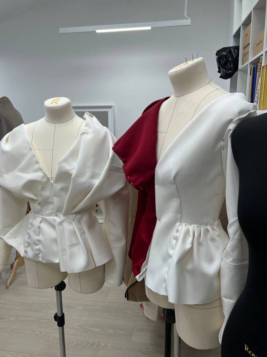 Офис 1811 — как мастерская художника. Вместо холстов и красок — манекены и полотна ткани, из которых мы формируем будущие изделия. Сейчас команда дизайнеров создает первые наброски для коллекции SS’26: разрабатывает силуэты с помощью макетирования (метод сборки сложных моделей с использованием булавок) и подбирает фурнитуру. Магия происходит после утверждения образцов — в момент, когда мы сравниваем эскиз с тем, что получилось 🤍