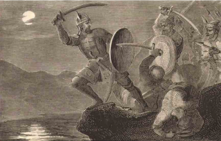 Одни историки говорят, что погиб он, просто перескакивая с одного струга в другой: упал в воду и не выплыл. Другие, что на его лагерь ночью напали воины Кучума, перебили казаков, а Ермак утонул, пытаясь доплыть до струга. Русские считают, что тело Ермака находится на дне Иртыша.