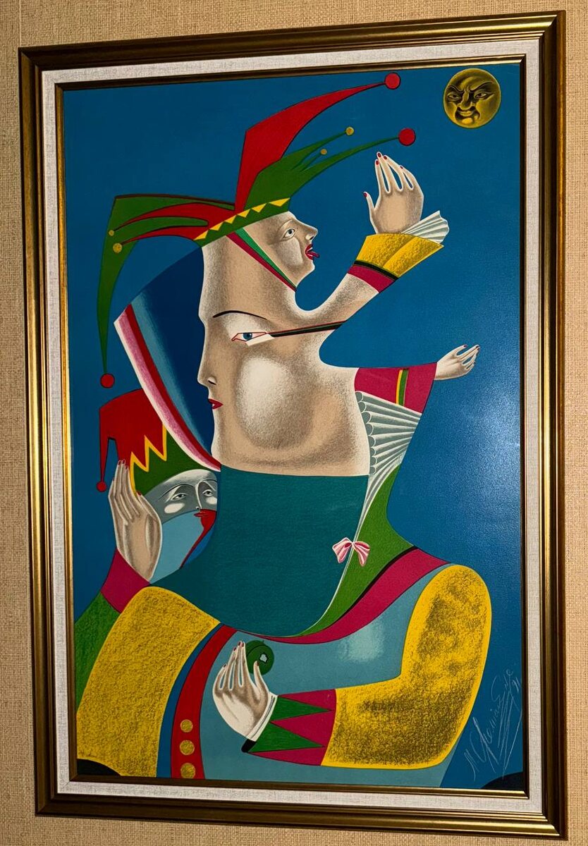 ⚡️⚡️Михаил Шемякин «Портрет Вацлава Нижинского», цветная подписная автолитография (отпечатана с пластины самим художником), гуашь, акварель, 1991 год, редкость (тираж 8-12 экземпляров), работа под стеклом, оформлена в багет, довольно большая - размер вместе с рамой 83х58 см. Замечательная и забавная работа Шемякина в том самом фееричном стиле, которым в свое время восхищались и Дали, и Миро, и Пикассо. Сюжет понятный - Нижинский во всех ипостасях и переплетениях балета Стравинского «Петрушка». Большая размашистая подпись Шемякина и дата в правом нижнем углу, подлинность рисунка подтверждается экспертным заключением Валерия Силаева - ведущего специалиста по российской и советской графике. Помимо интересного содержания и красочного декора, работа безусловно станет перспективной инвестицией в одного из последних живых классиков постмодернизма. Цена 125 000 рублей