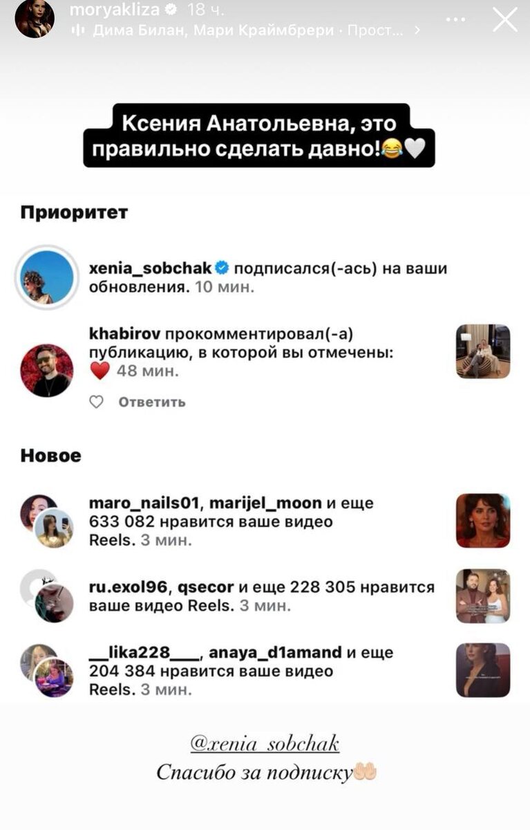 Собчак подписалась на жену Сарика Андреасяна, когда все остальные герои интервью уже признаны иноагентами, уехали из страны или сидят в