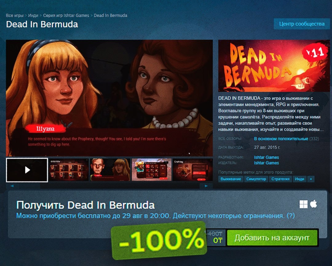 ⚡️Халява, забрать: в Steam раздают RPG-выживач Dead In Bermuda У тайтла 71% положительных отзывов, есть русский язык, залипательный геймплей и низкие системки. Добавляем в коллекцию до 29 августа здесь. CtrlAltDelights- подписаться