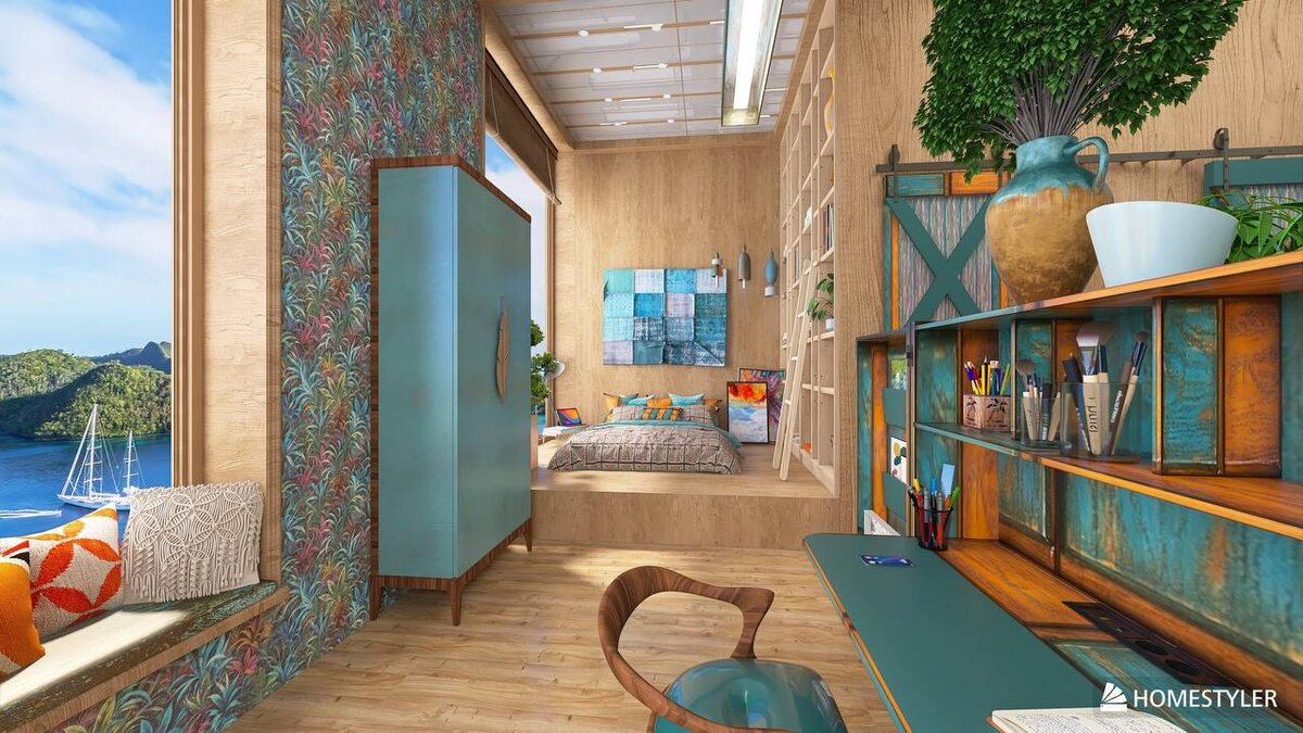✨ Сегодня хотим поделиться проектом нашей талантливой выпускницы - Ирины Гетце. Ирина по образованию продуктовый технолог, но кардинально изменила свою жизнь. После 30 лет в Германии она вернулась на родину и решила больше не работать «ради заработка», а заниматься делом мечты - дизайном интерьеров. 🔹 Проект, который она представляет - вилла «Виват». Заказчики - молодая семейная пара с двумя детьми. Это удивительно разносторонняя семья: инженер с любовью к горам, искусствовед с тонким вкусом и страстью к антиквариату, творческая дочь-художница и младший сын - будущий космонавт. В их доме живут три сенбернара и спасённая кошечка. 🏡 Сегодня мы заглянем в детскую комнату дочери. Она учится в художественном университете, увлекается стилем хиппи и британским ретро, любит яркие детали, необычные сочетания и свободу самовыражения. Именно это настроение и стало основой для дизайна её комнаты. Каждый проект выпускников - это не просто интерьер, а целая история семьи, характеры, привычки и